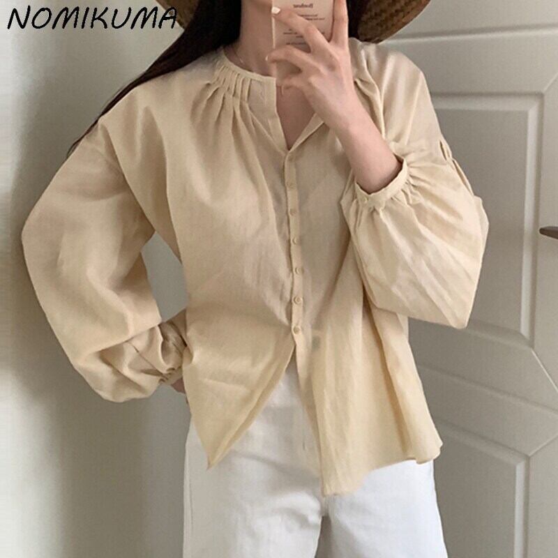 のみくま2022夏の日焼け止めブラウスCausalPuffスリーブOネックウーマンシャツ無地トップ サマー 夏物 ソリッドカラー kor92002990649