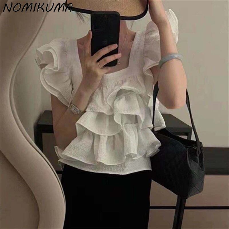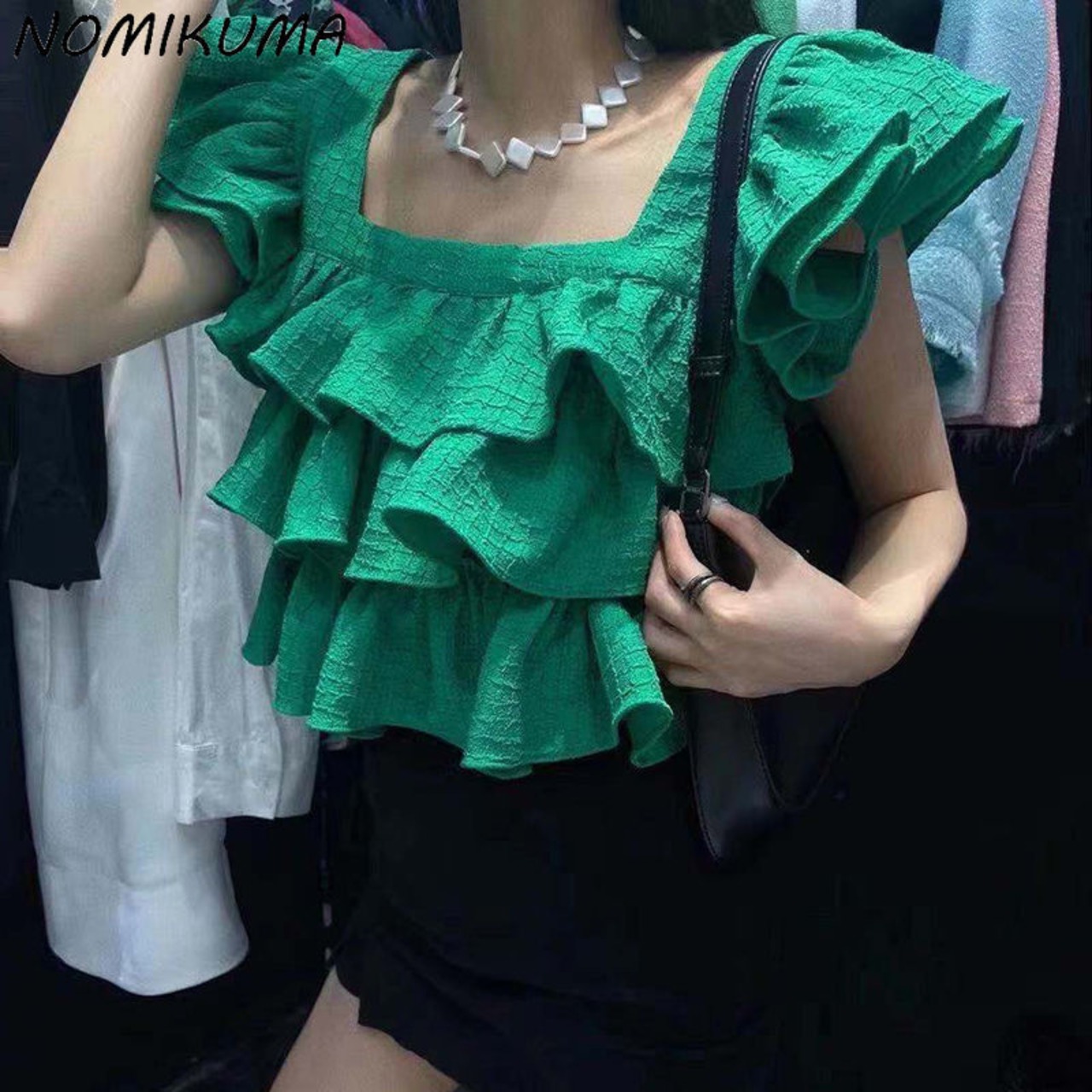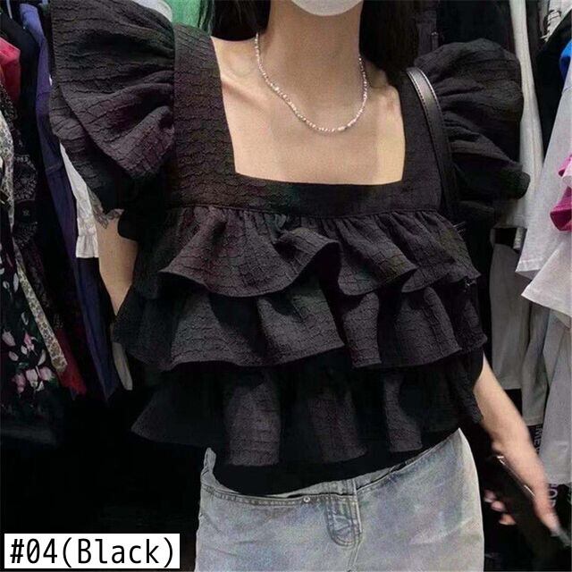 のみくまシックレイヤードフリルショートレディースブラウススクエアカラートップス2022SummerDe Moda サマー 夏物 スクウェア kor96962961644