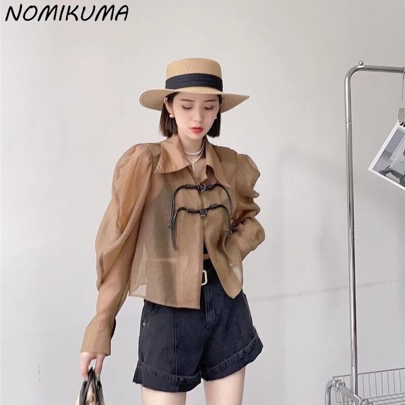 Nomikuma 2022 SumemrSunProtectionブラウストップスパフスリーブターンダウンカラーウーマンBlusaShirtDe kor51804915896