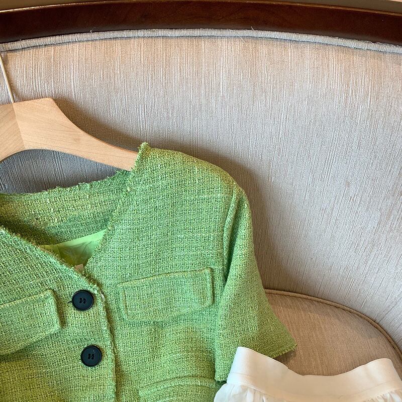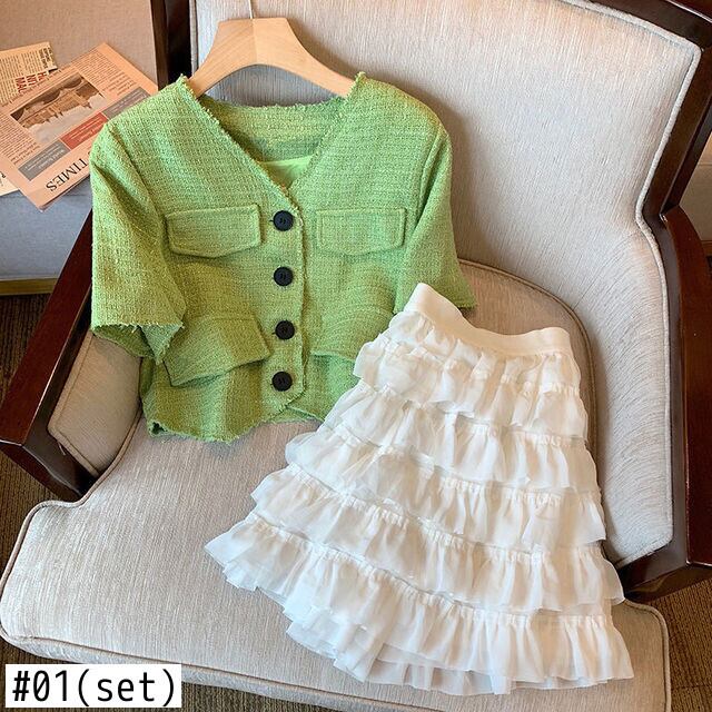 ノミクマスウィートウィメンズスカートセット2022サマー半袖Vネックシックトップ+ウエストレイヤードフリルAラインプリーツ衣装 ショート ハーフスリーブ 大人ガーリー キュート カジュアル 夏物 kor81010584870