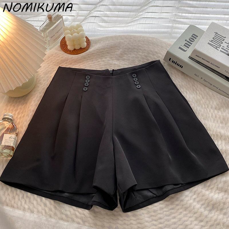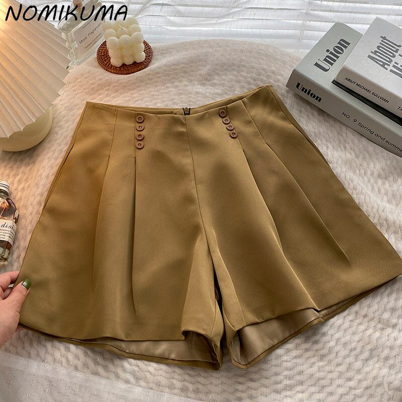 のみくまダブルブレストウエストショーツ女性2022年夏下因性ソリッドワイドレッグショーツ ショート サマー 夏物 ブルマー ワイドパンツ ソリッドカラー kor45728955541