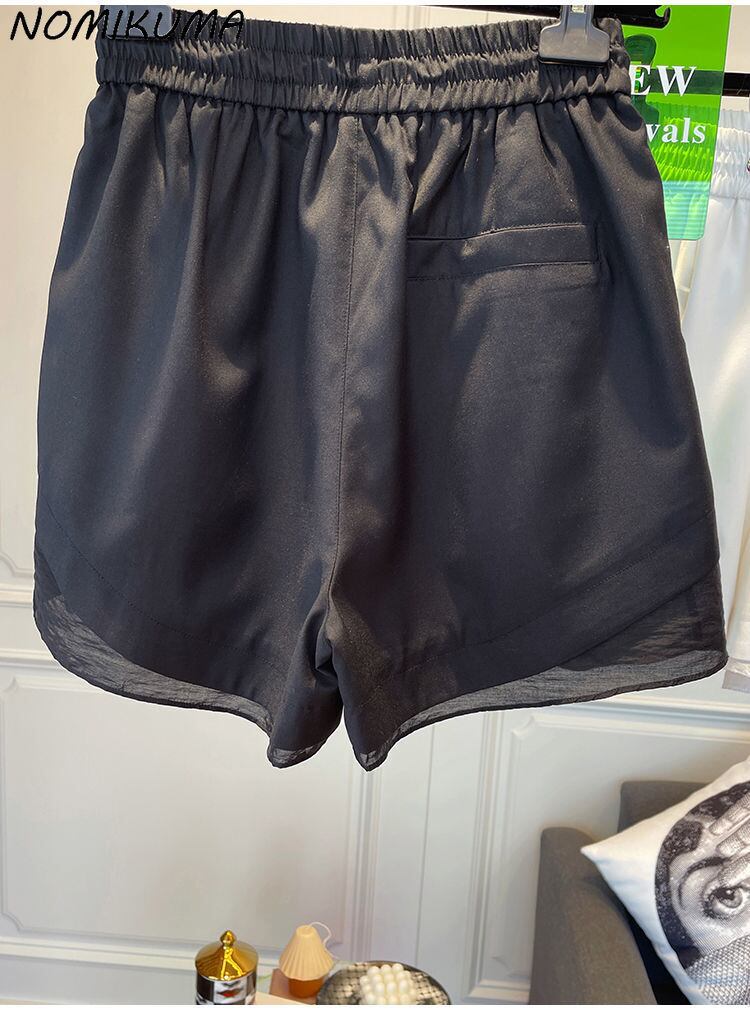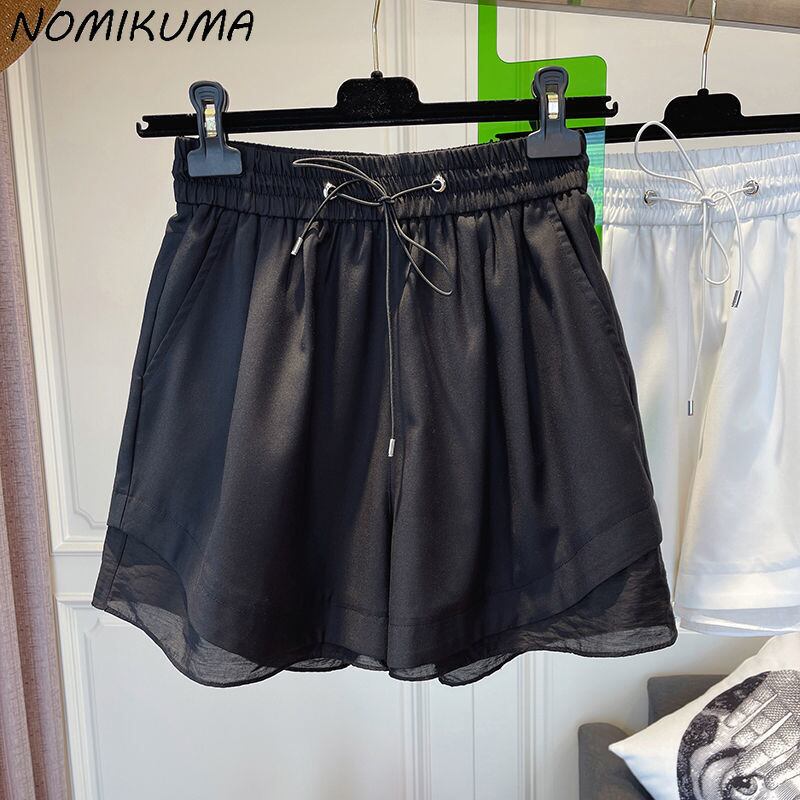 ノミクマ2022サマーレディースショーツガーゼパッチワークワイドレッグボトムスゆったりとした伸縮性ウエスト エラスティック 夏物 ブルマー ワイドパンツ kor64122867737