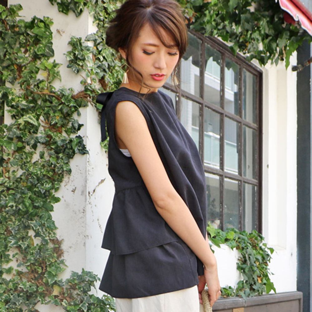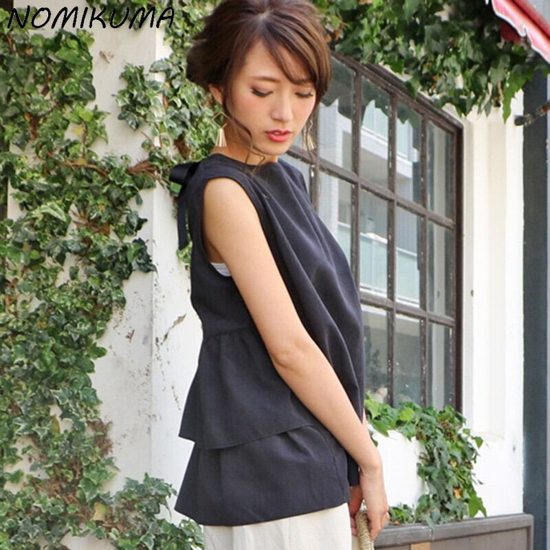 のみくまフリルブラウス女性2022年サマースタイルドールシャツバックボウネクタイOネックスウィートプルオーバートップデ リボン 大人ガーリー キュート カジュアル 夏物 kor68848407024