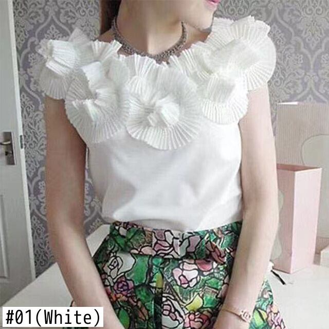 のみくまシック3DフラワーVネックシャツ無地ノースリーブ2022Sumemrレディーストップス ソリッドカラー フラワーデザイン kor35378737148