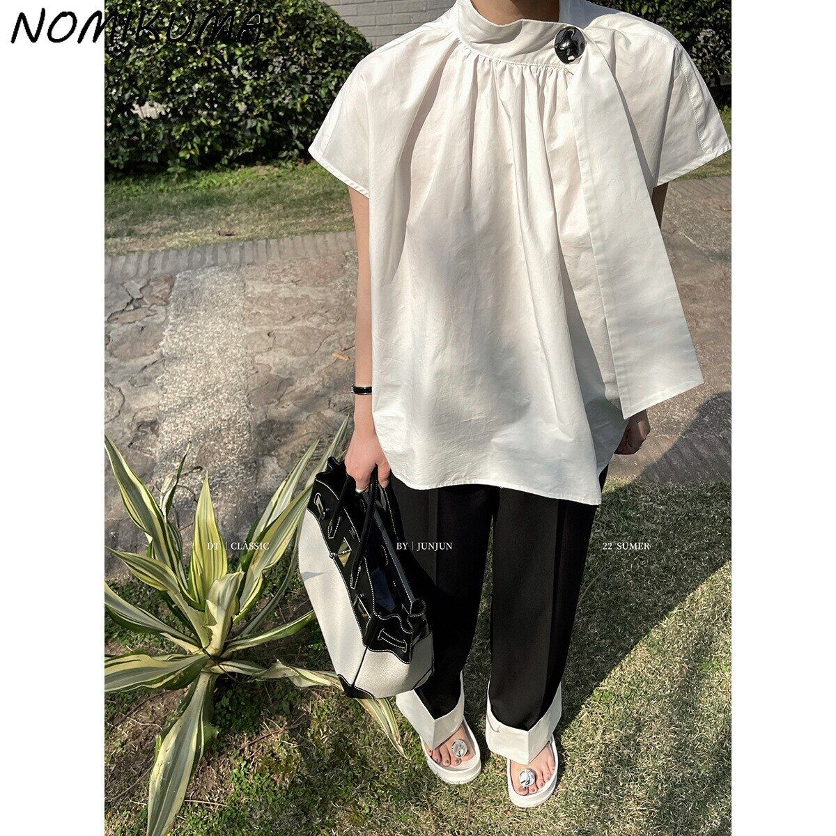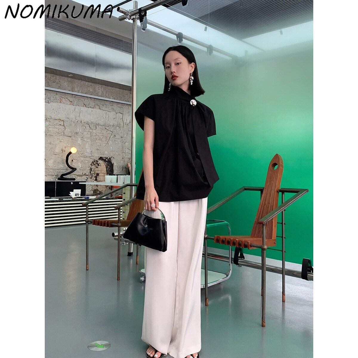 のみくまカジュアルスタンドネックリボンブラウストップ無地ノースリーブウーマンシャツ2022夏フェミニマ サマー 夏物 ソリッドカラー kor2517707630