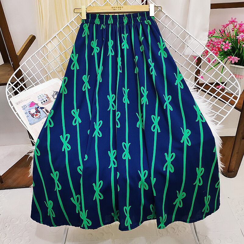 のみくまシックボウノットプリントスカートレディース伸縮性ウエストカジュアルポケットお尻スタイルスカートファルダス リボン エラスティック kor95432528730