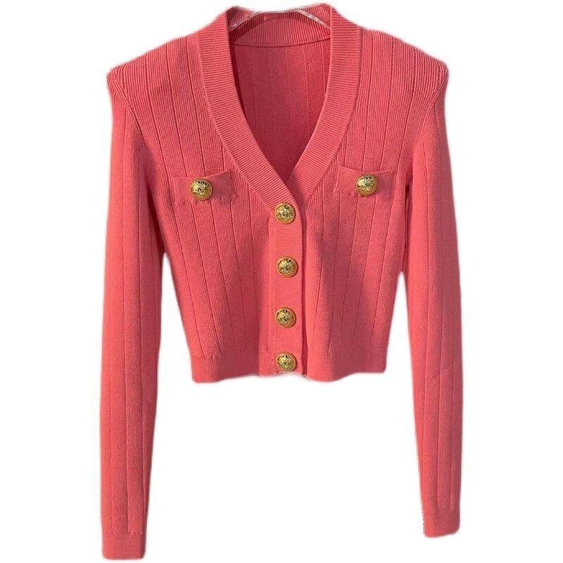 のみくま2022秋スリムショートニットコート長袖シングルブレストVネックレディースセーターカーディガン ロング オータム 秋物 kor32807180621