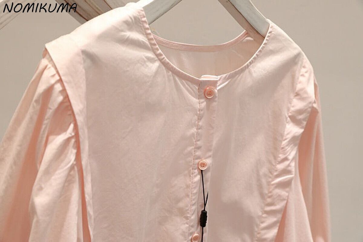 のみくまスウィートパフスリーブウーマンドールシャツ2022夏の因果シングルブレストOネックブラウスシック 大人ガーリー キュート カジュアル サマー 夏物 kor76958826433