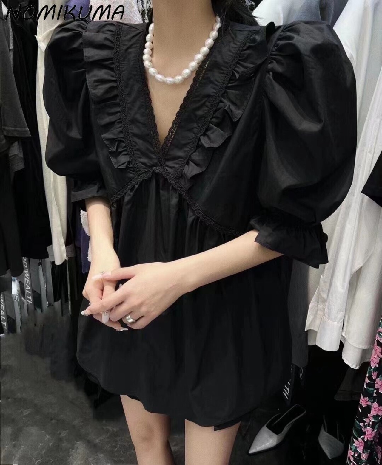 のみくまシックパフスリーブフリルVネックフローラルシャツ2022夏の女性ブラウスCausalDeModa サマー 夏物 花柄 kor59252671543