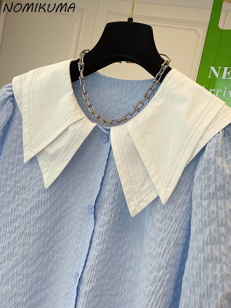 のみくまスウィートヒットカラーピーターパンカラードールシャツシックパフスリーブレディースブラウストップス2022SummerDe 大人ガーリー キュート カジュアル サマー 夏物 kor27207370154