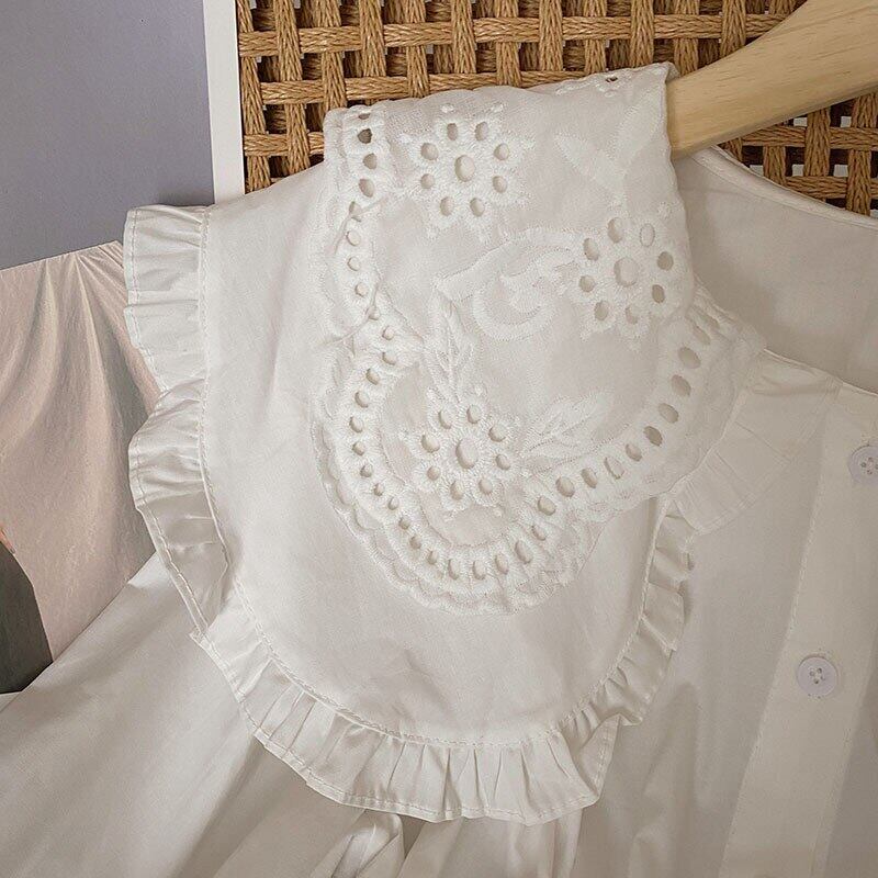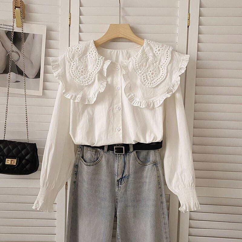 ノミクマホワイト長袖ブラウス女性2022トップススウィートシックピーターパンカラーデモダ ロング 大人ガーリー キュート カジュアル kor11042681227