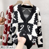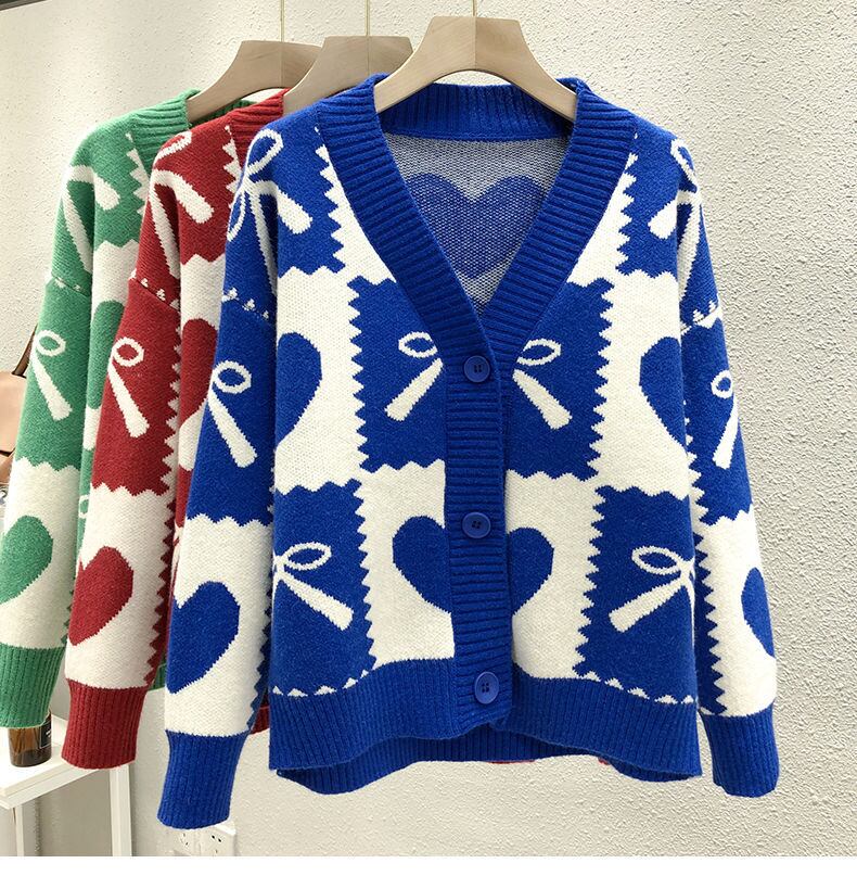 のみくまコントラストカラーラブハートチェック柄ニットカーディガンレディース2022年秋冬因果Vネックセーターコート オータム 秋物 ウィンター 冬物 kor94541888514