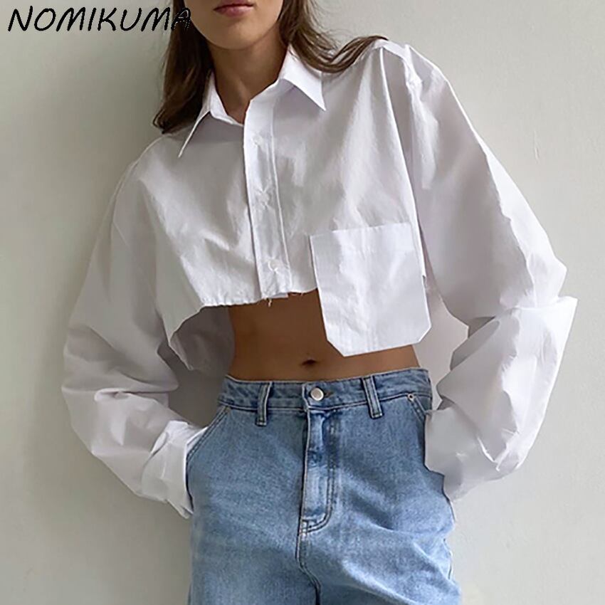 ノミクマ2022秋の作物不規則なパッチワークシャツ原因となる長袖ターンダウンカラー女性ブラウスソリッドトップス ロング オータム 秋物 ソリッドカラー kor65432782725