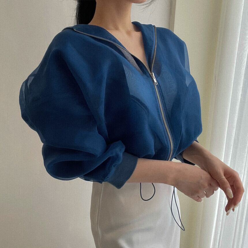 ノミクマシックサンプロテクションシースルージャケットコート2022夏長袖ジッパースタンドネックレディースアウタートップス ロング サマー 夏物 kor54129101338