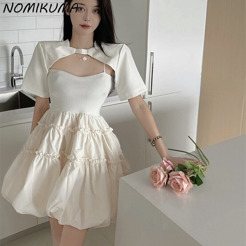 のみくまツーピースレディースセット半袖プルオーバー超短トップ+ウエストスウィートAラインスリングワンピース2022 ショート ハーフスリーブ 大人ガーリー キュート カジュアル kor99407211623