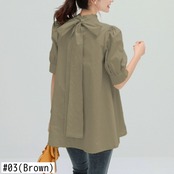 ノミクマ2022スタイルプルオーバーブラウスストライプボウ包帯スタンドネックウーマンシャツカジュアルパフスリーブスウィートトップ リボン 大人ガーリー キュート kor70718920588