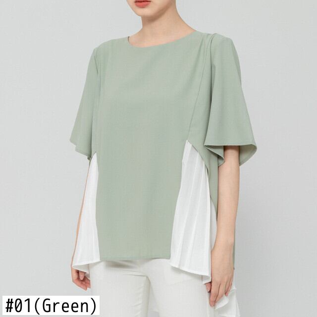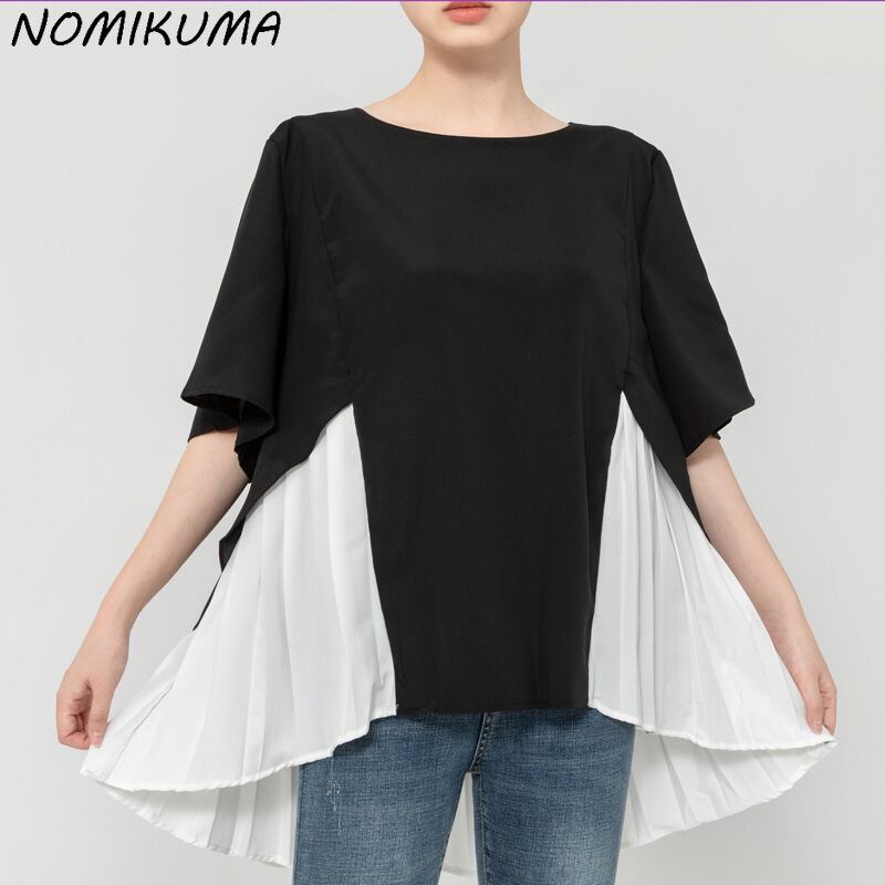 のみくま風パッチワーク半袖シフォントップス因果不規則Oネックブラウス2022サマーシャツ ショート ハーフスリーブ 夏物 kor22019172331