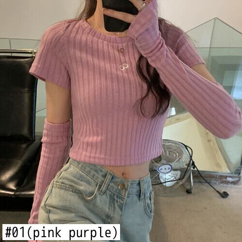 のみくまセクシースリムクロップニットトップス2022半袖Oネックプルオーバーセータースタイルレディースニット ショート ハーフスリーブ kor93029035163