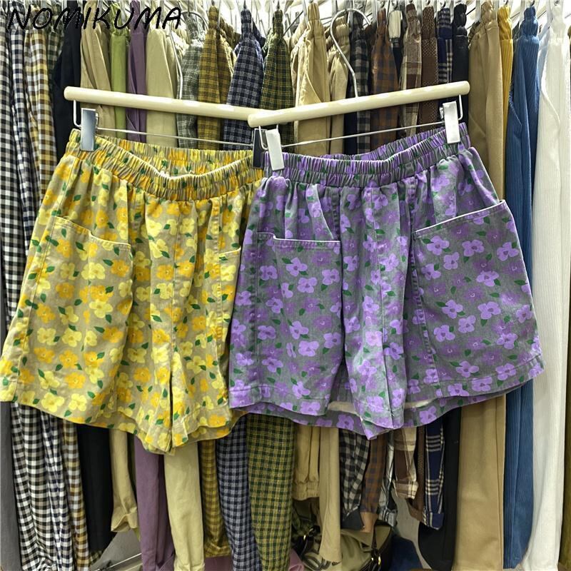 ノミクマレディースショーツサマーフローラルプリントショート2022CausalElasticWaistダブルポケット エラスティック 伸縮 夏物 ブルマー 花柄 kor22885536938