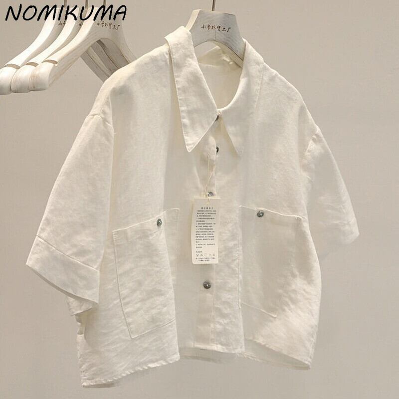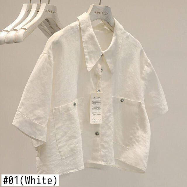 のみくまショートウーマンブラウス因果ターンダウンカラーシャツ2022サマースリーブソリッドトップス 夏物 ソリッドカラー kor35706709463