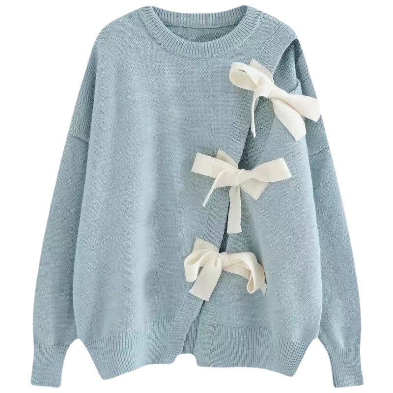 Nomikuma Knitwear Women 2022 Autumn Winter Pull Sweet Bow Tie Causal Irregular Sweater Coat Causal Women Knited Pullovers リボン 大人ガーリー スウィート キュート カジュアル オータム 秋物 ウィンター 冬物 kor71900811394