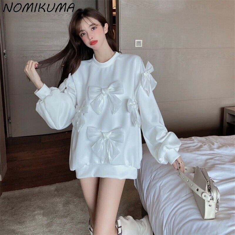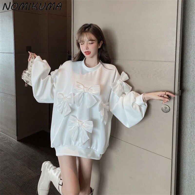 Nomikuma Sweet Chic Bowknot 長袖OネックプルオーバージャンパーCausalHoodiesTop ロング リボン 大人ガーリー スウィート キュート カジュアル パーカー kor31592540064