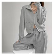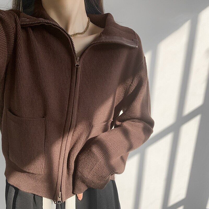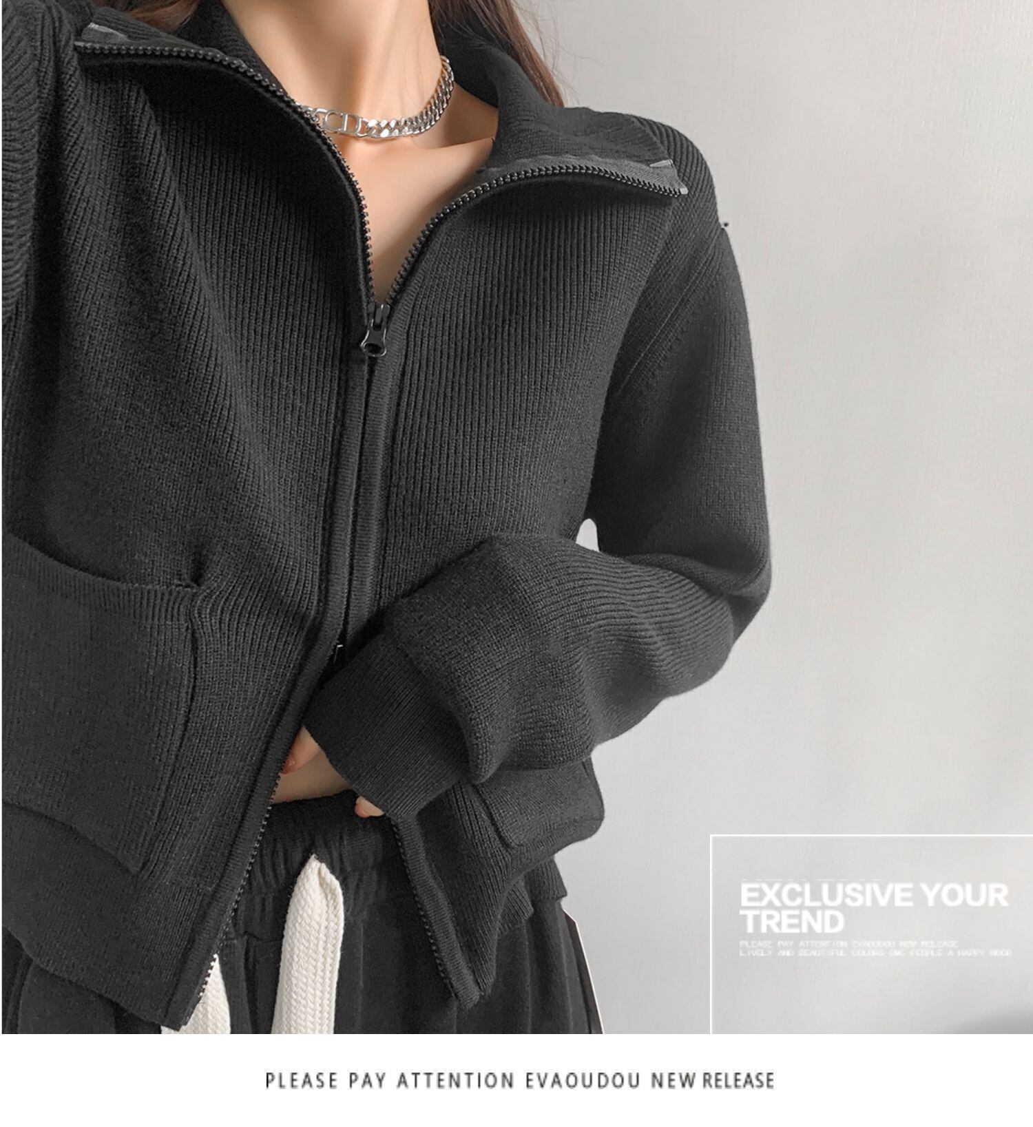 のみくま因果ダブルジッパーカーディガン女性秋長袖セーター2022ポケットターンダウンカラークロップニット ロング オータム 秋物 kor34714800648