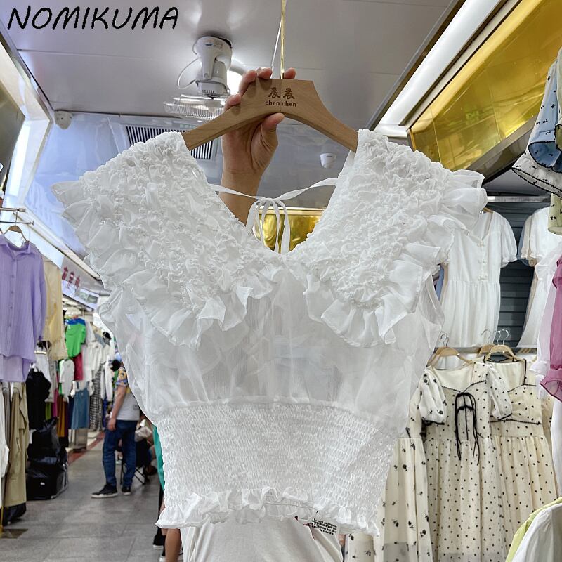 ノミクマ2022サマーノースリーブシフォントップスピーターパンカラーシックブラウスコーザルショートデモーダ 夏物 kor79250498749