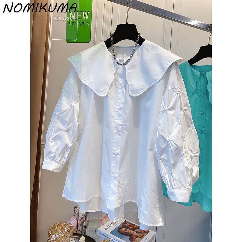 ノミクマシックフォールドパフスリーブウィメンズブラウススウィートピーターパンカラートップシャツ2022SummerDe Moda 大人ガーリー キュート カジュアル サマー 夏物 kor52030848135