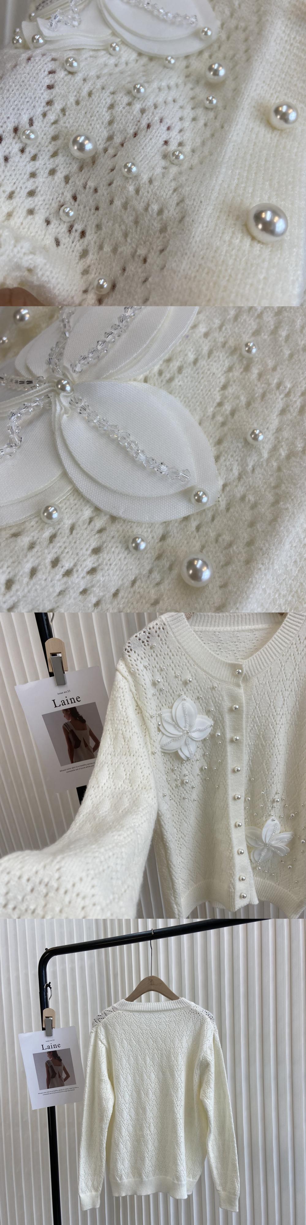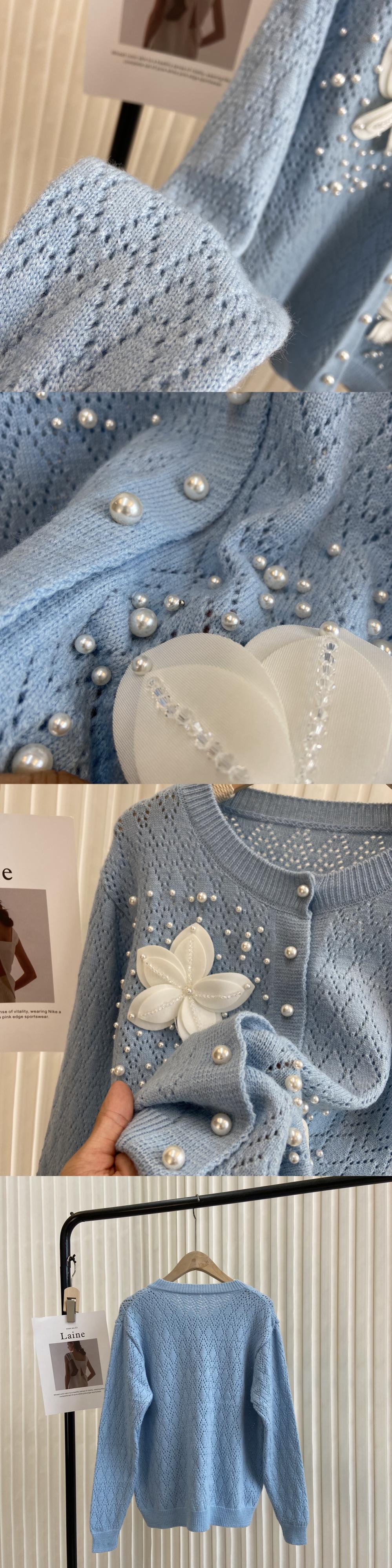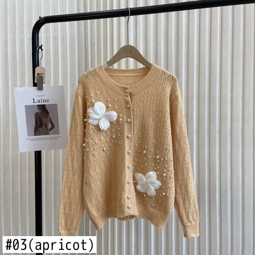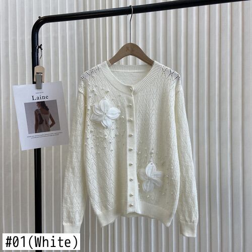 ノミクマニットコートビーズフラワーソリッドホローアウトセーターシンカーディガン2022オータムニットジャケット 秋物 ソリッドカラー フラワーデザイン kor8781248077