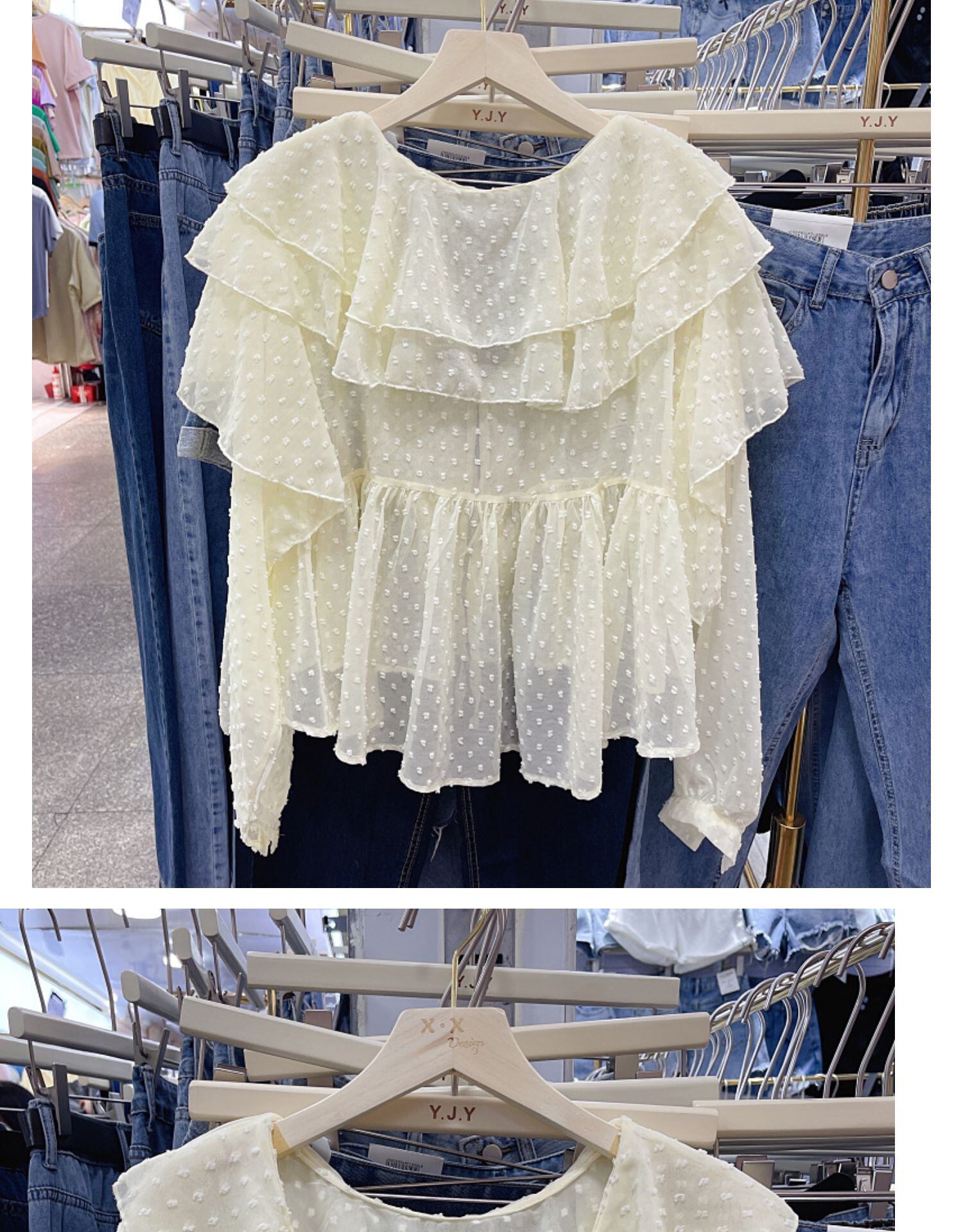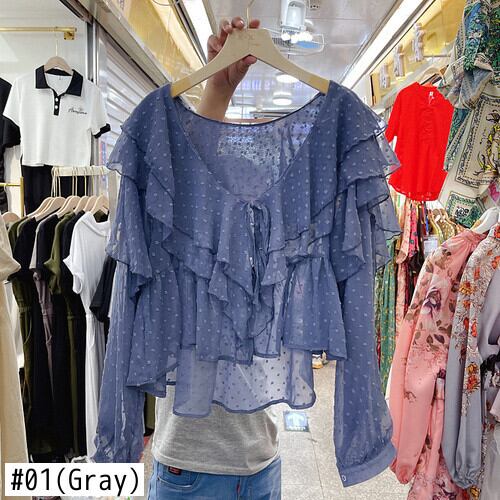 ノミクマフロックショートブラウストップスCausalVネックフリルレースアップロングスリーブウーマンシャツ2022AutumnDe 長袖 オータム 秋物 kor1861438756