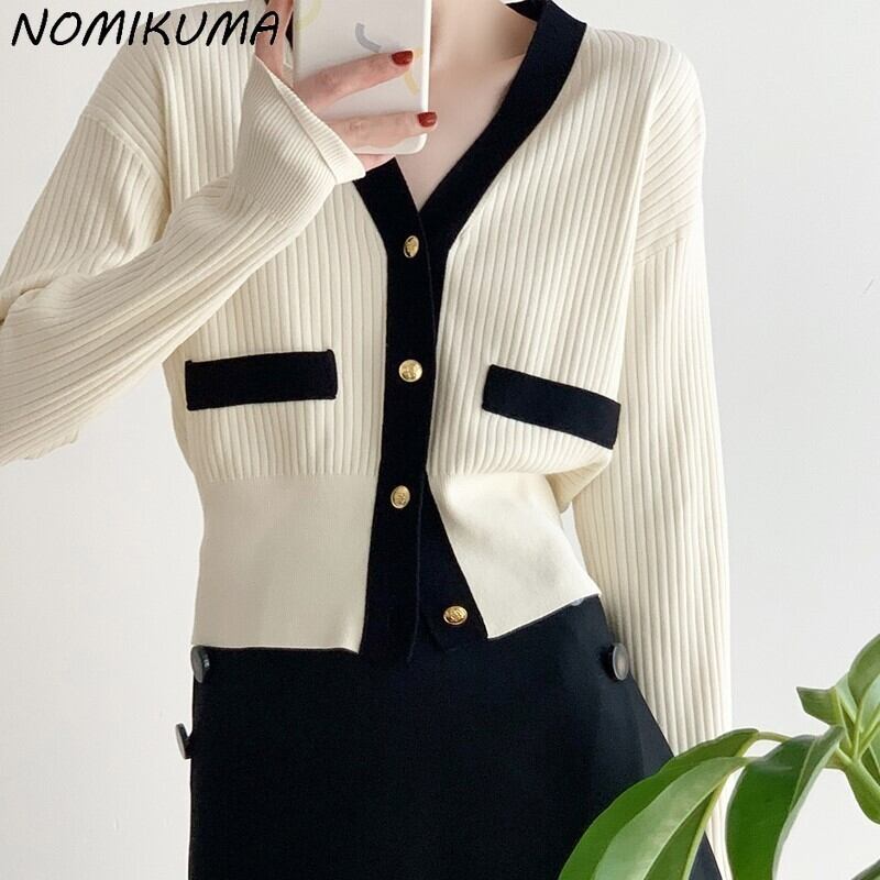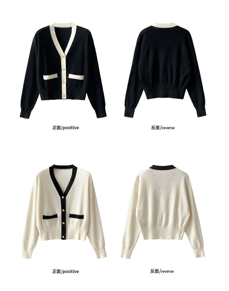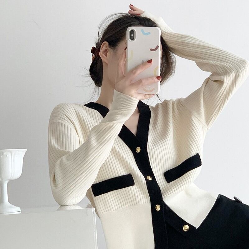 のみくまコントラストカラーニットカーディガン2022年秋冬セーターコートカジュアル長袖Vネックニットトップス ロング オータム 秋物 ウィンター 冬物 kor8990380506