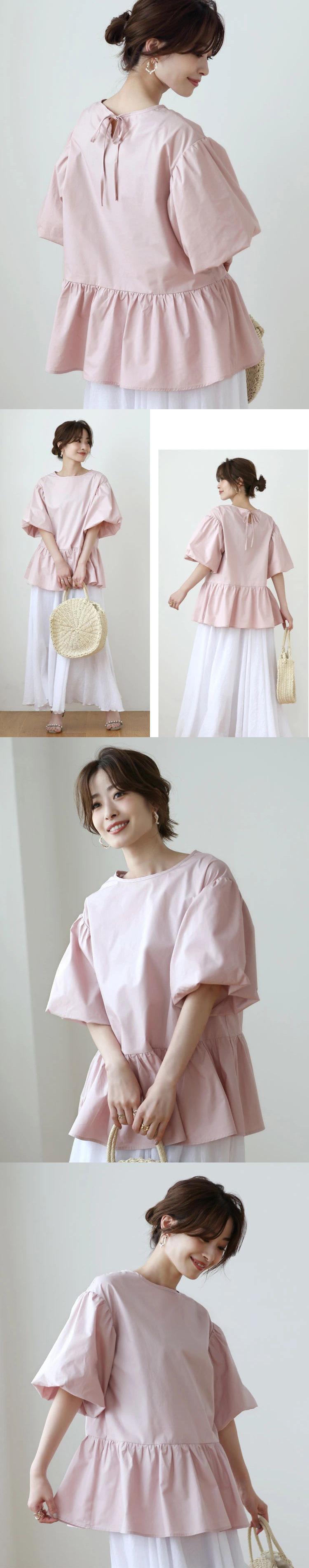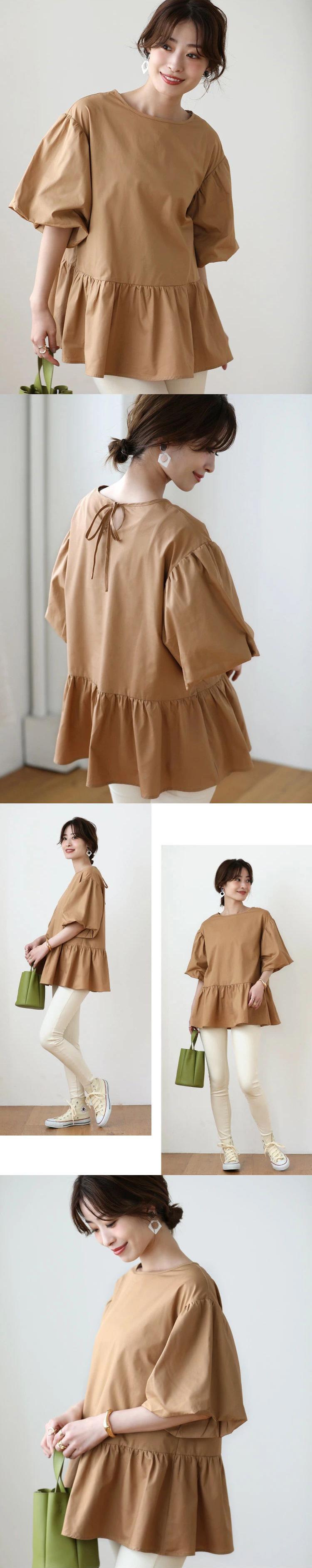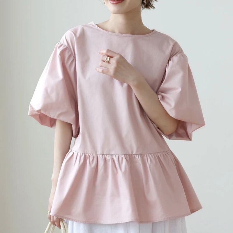 ノミクマ2022夏のOネックブラウストップスシックなパフスリーブ女性人形シャツ因果フリルプルオーバーデモダ サマー 夏物 kor71708058204