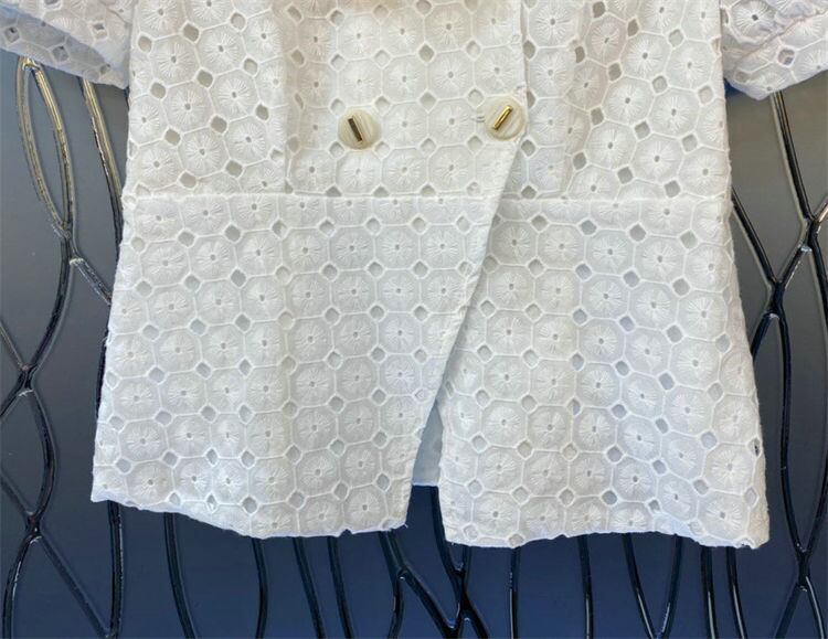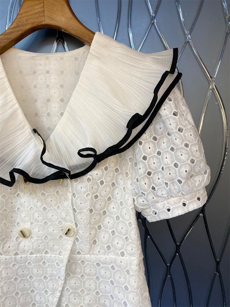 ノミクマ2022サマーウィメンズブラウスシックピーターパンカラーパフスリーブシャツHollow-outDeModa 夏物 kor94510596593