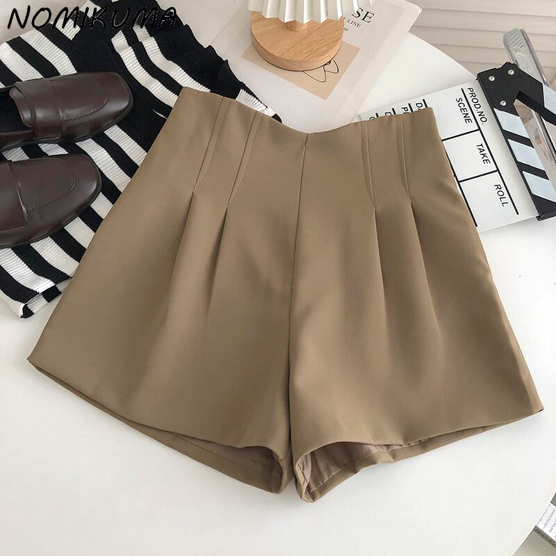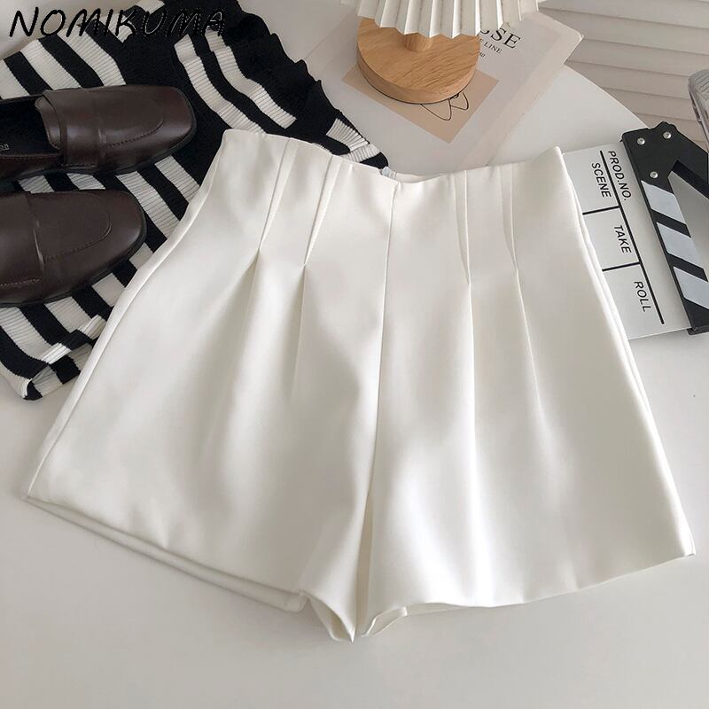 ノミクマ2022サマーウーマンショーツウエストボトムス因果ソリッドワイドレッグショートフェミニモス 夏物 ブルマー ワイドパンツ ソリッドカラー kor33212290687
