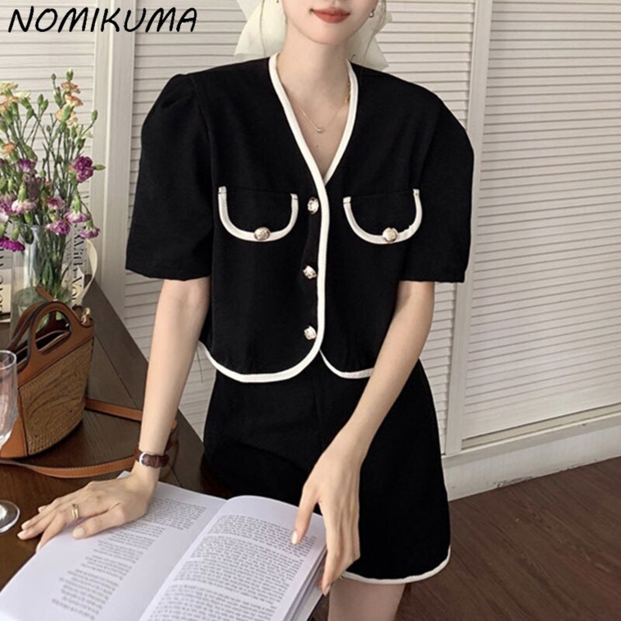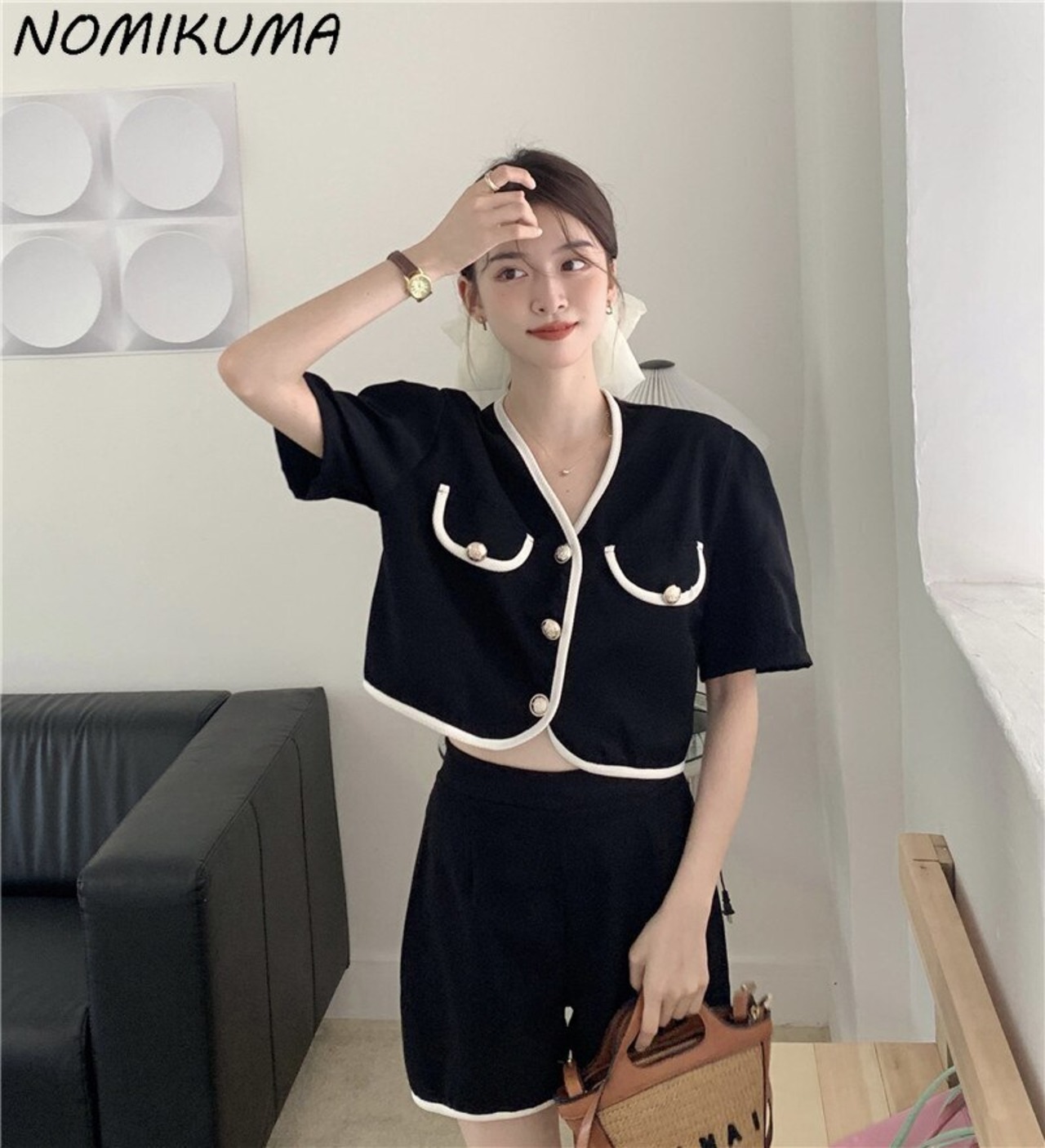 ノミクマシックサマーセットVネックポケットショートコート+ウエストワイドレッグショーツツーピースレディース衣装 夏物 ブルマー ワイドパンツ kor56128033638
