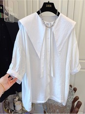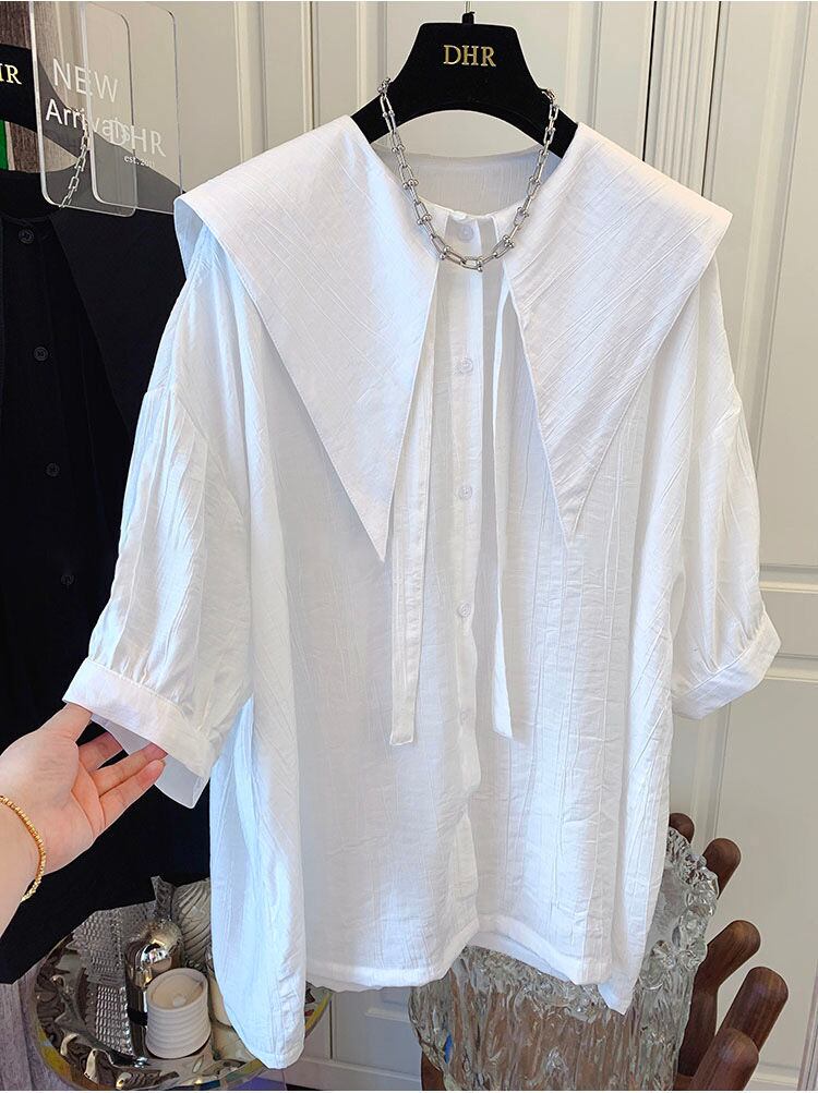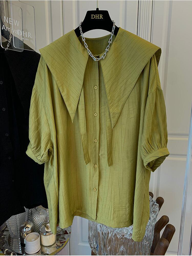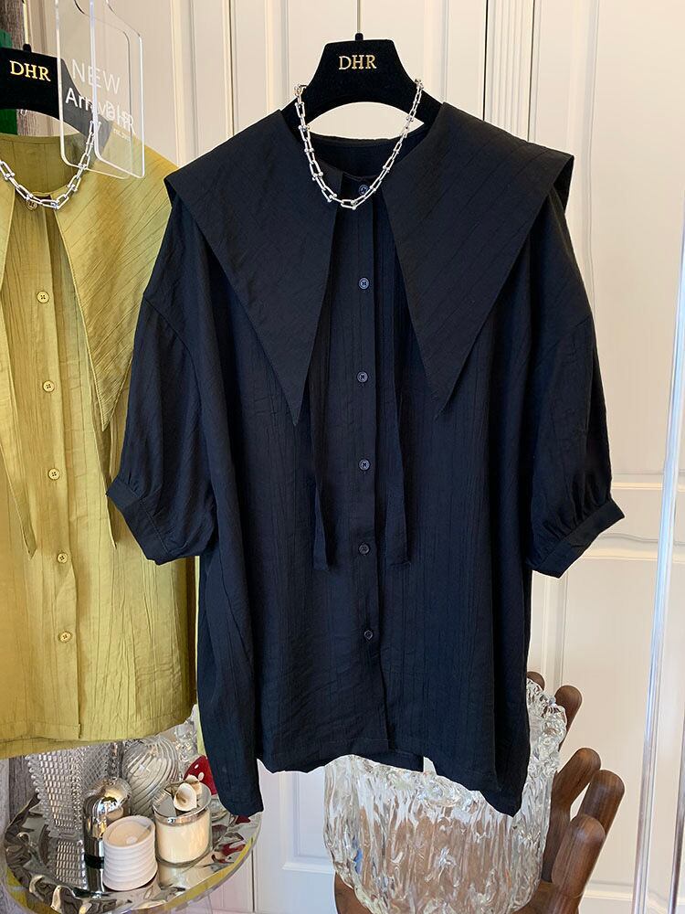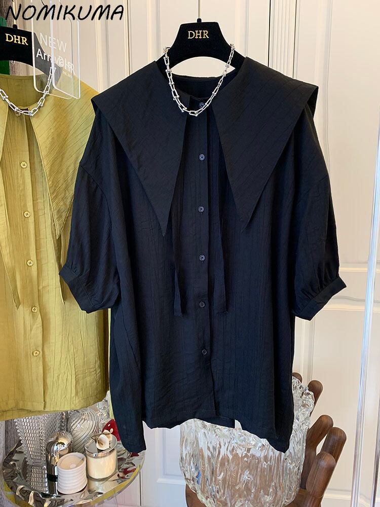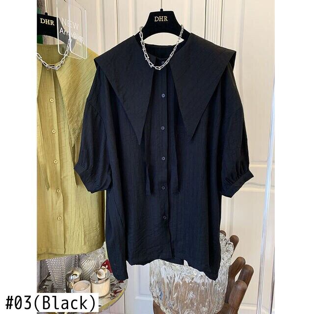 ノミクマリボンターンダウンカラーブラウストップスパフスリーブウーマンシャツ2022SummerDe Moda サマー 夏物 kor13238502179