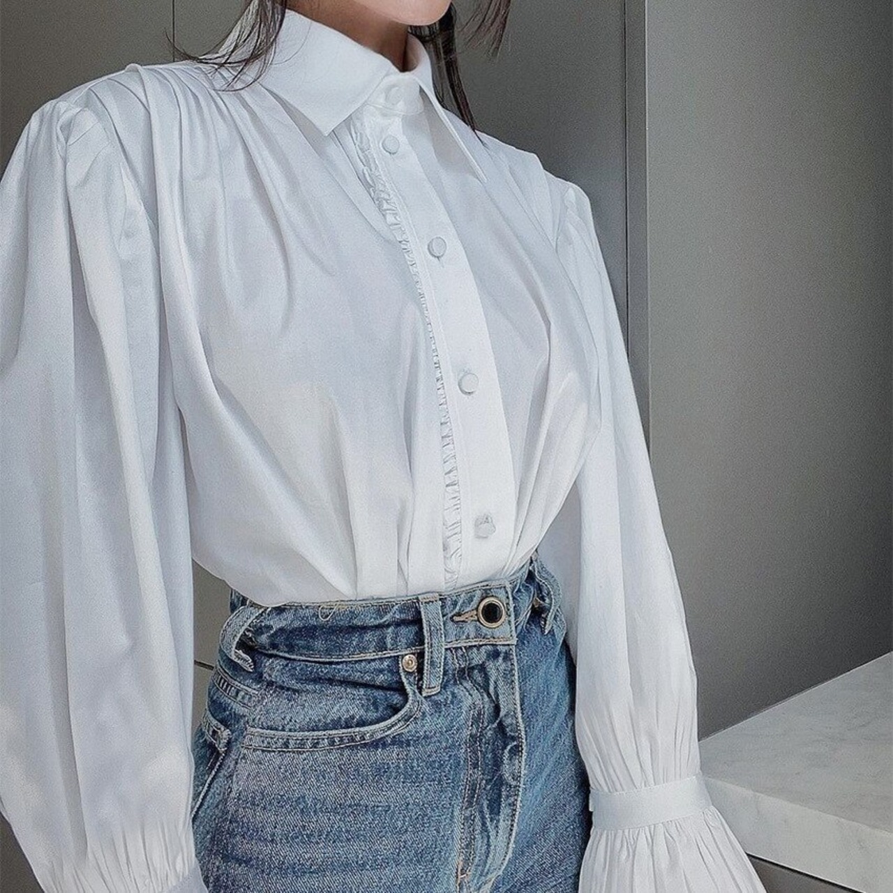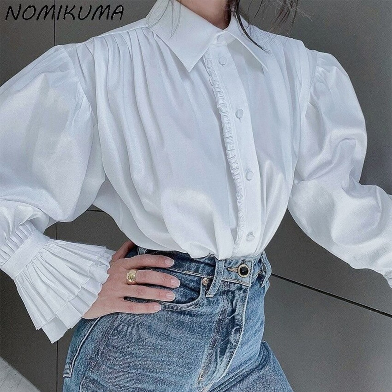 ノミクマ2022レディースロングパフスリーブブラウスシャツ秋ソリッドトップススタイルの服カミサ ソリッドカラー kor42532313795