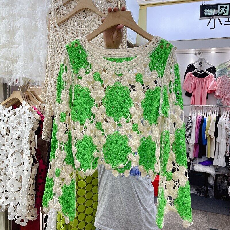 のみくまコントラストカラーフックくり抜きセータープルオーバー因果長袖Oネックニット2022秋ショートプルオーバー ロング オータム 秋物 kor6489887802