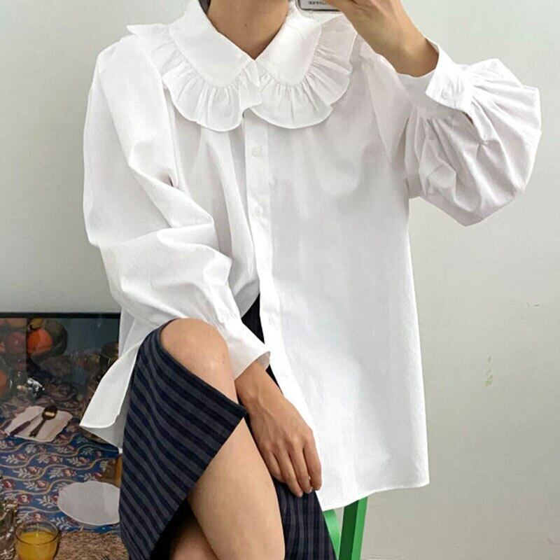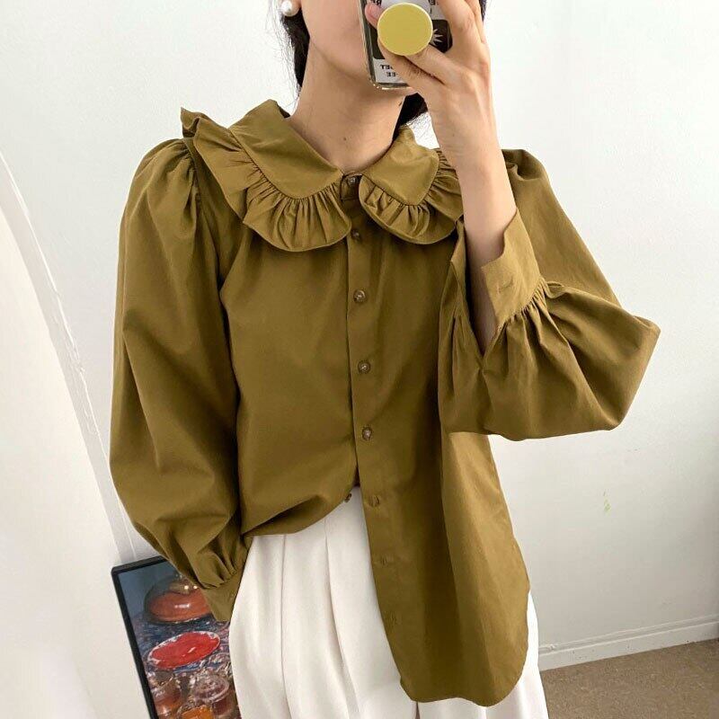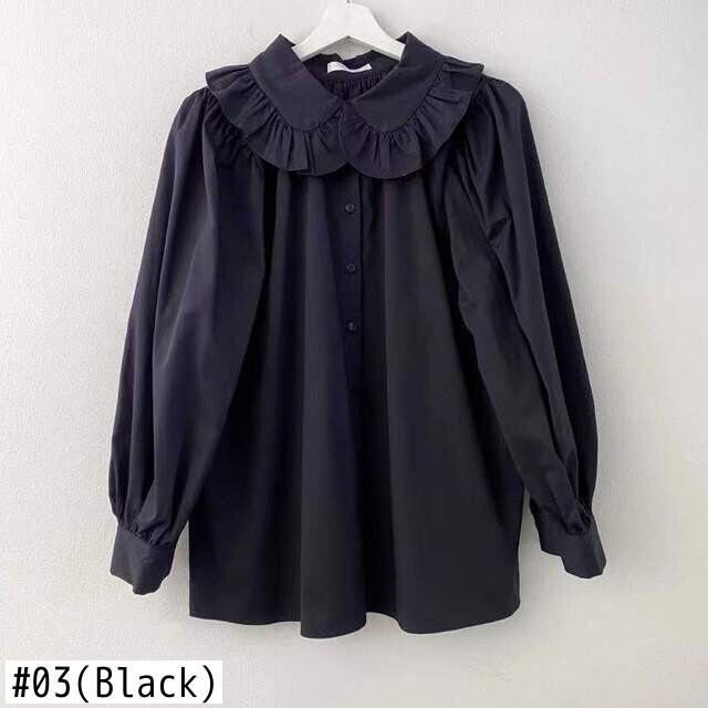 ノミクマレディースブラウスシックフリルピーターパンカラーシャツCausalLanternスリーブDe2022オータムトップス ランタンスリーブ 秋物 kor6689996790