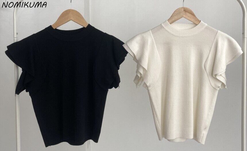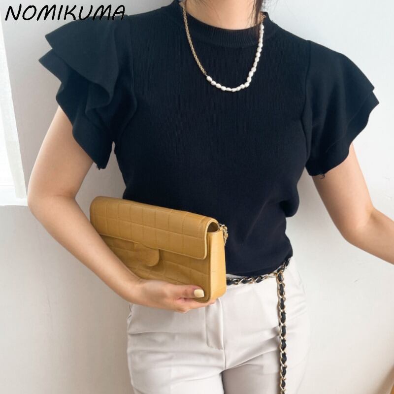 のみくまシックフライングスリーブスリムウーマンセーターCausalO-neckKnitwear 2022 Summer Pullover Knitted Tops サマー 夏物 Oネック kor82789771297