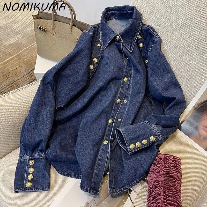 のみくまデミンブラウストップス女性2022年秋ボタンカウボーイ因果長袖ターンダウンカラーシックジーンズシャツ ロング オータム 秋物 kor93153613210