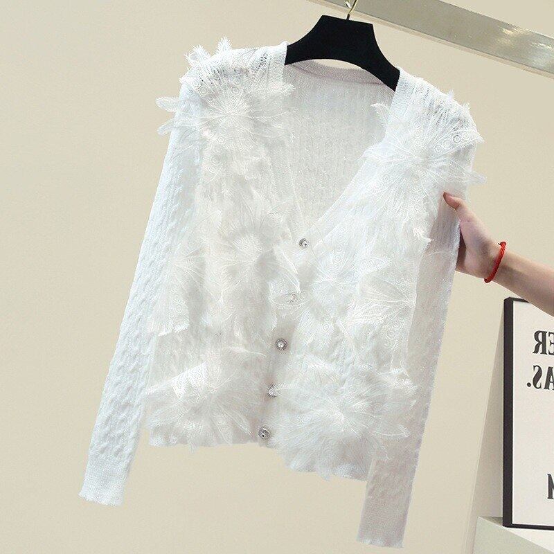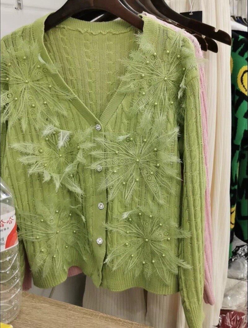 Nomikumレディースカーディガンニットセーター2022シックな花長袖Vネックニットコート ロング フラワーデザイン kor92409668791