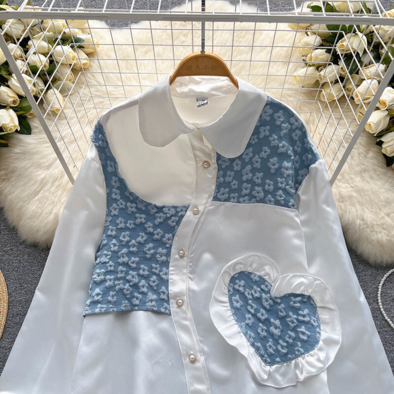 のみくまレディースブラウスフローラルパッチワークフリルラブハートシャツ2022秋長袖カジュアルトップs ロング オータム 秋物 花柄 kor70907980886
