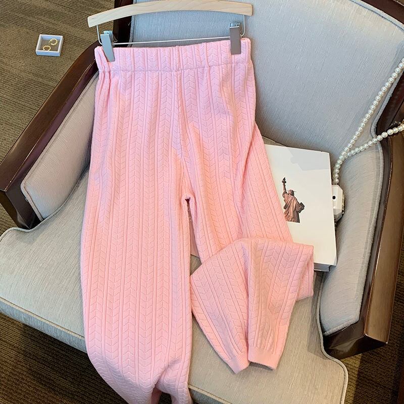 のみくまカジュアルスウェットニットセットレディース秋長袖ジッパースタンドネックコート+ウエストハーレムパンツ2枚 ロング オータム 秋物 kor42770009218