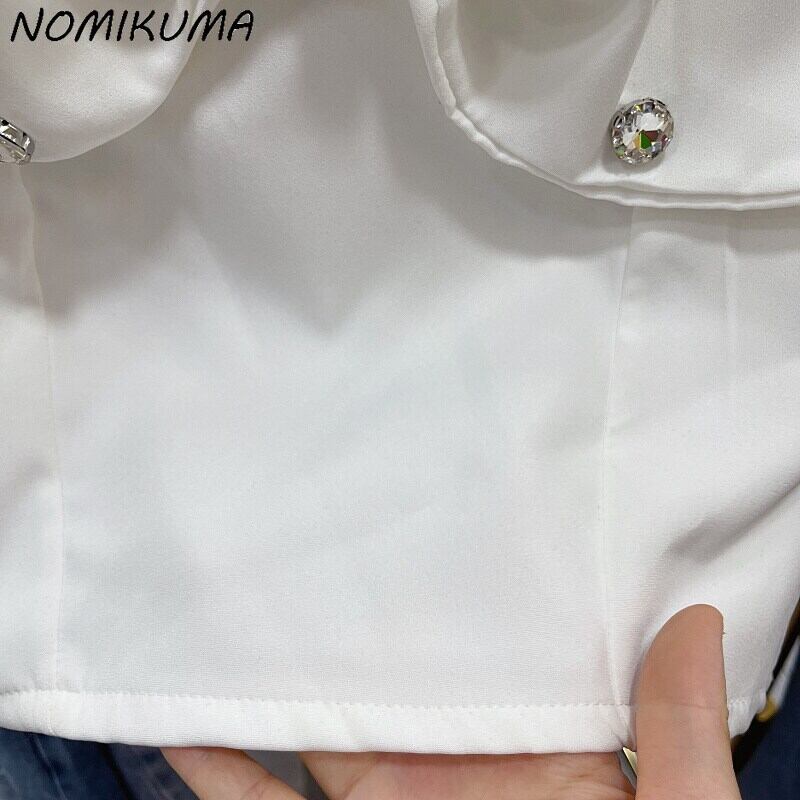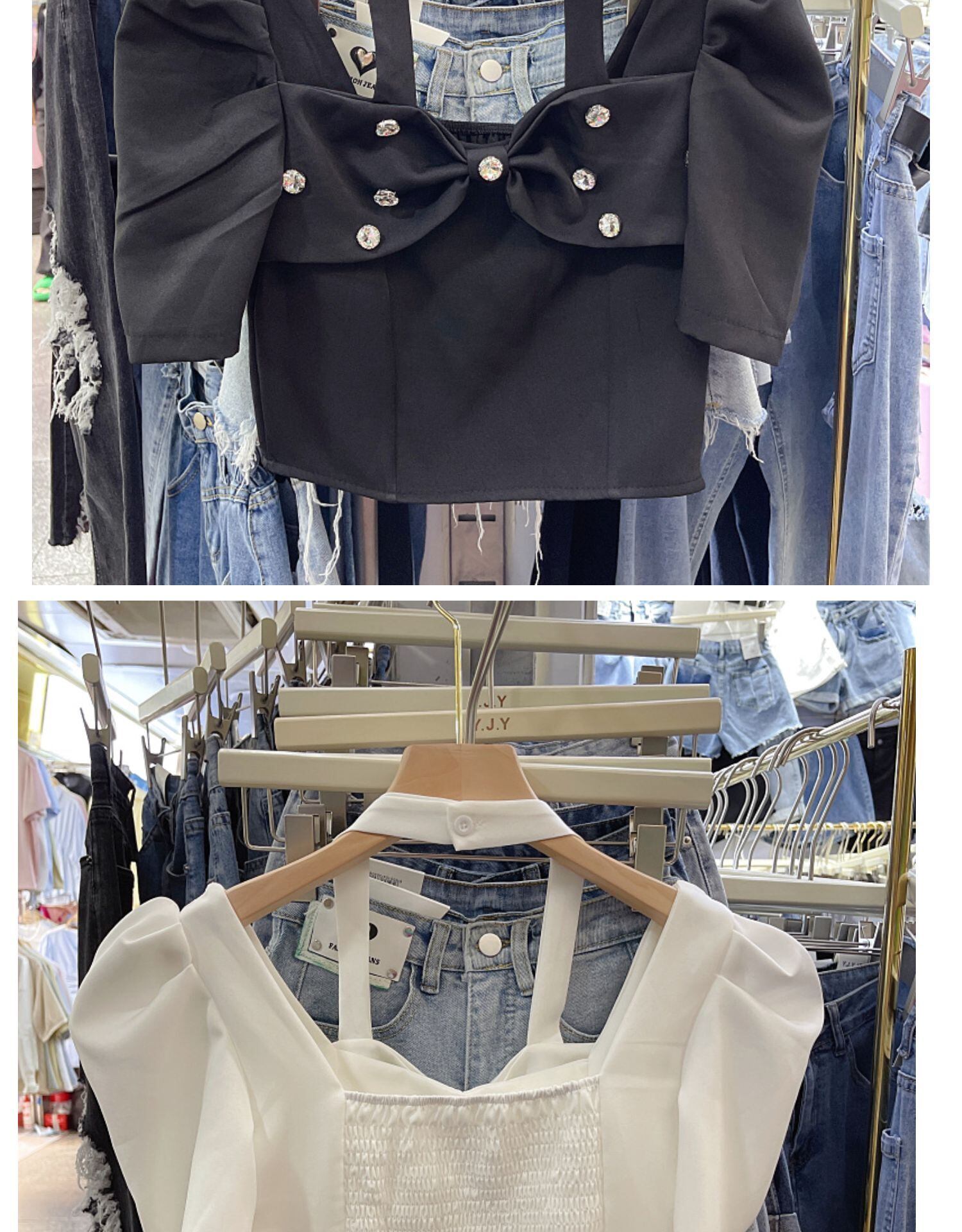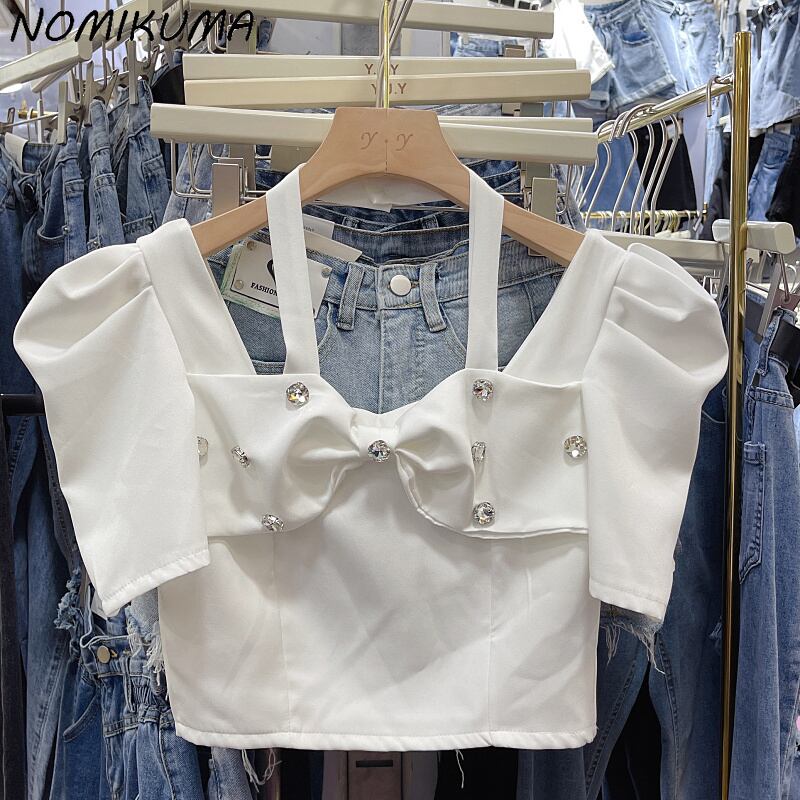 KUSAHIKIセクシーホルターショートブラウスレディースサマーパフスリーブシックシャツ2022ダイヤモンドボウノットスリムクロップトップ リボン 夏物 kor9656646467