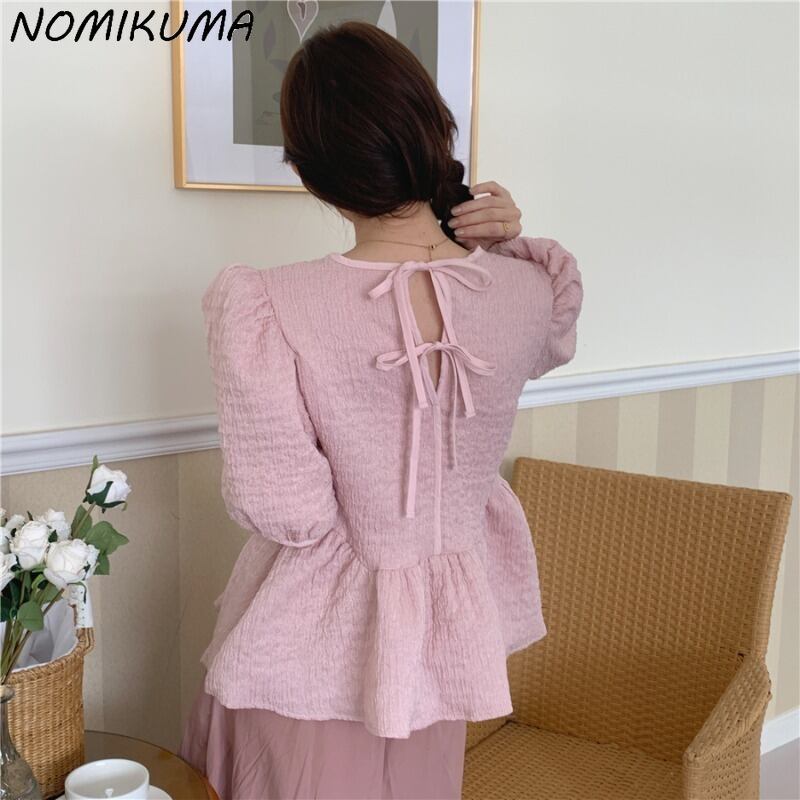 のみくまシックスウィートウーマンドールシャツパフスリーブカジュアルOネックブラウストップス2022SummerDe 大人ガーリー キュート サマー 夏物 kor5016796058