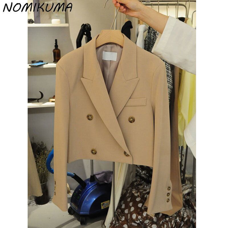 のみくまダブルブレストノッチカラーレディースブレザー2022秋長袖スーツジャケット因果ショートブレザーフェミニモス ロング オータム 秋物 kor43329143089