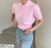 のみくまコントラストカラーターンダウンカラーセーターカーディガンパフスリーブスリムショートニット2022ニットコート kor5755232578