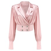 のみくまダブルブレストスリムウエストショートブラウスノッチカラー長袖ウーマンシャツ2022 ロング kor45466984049